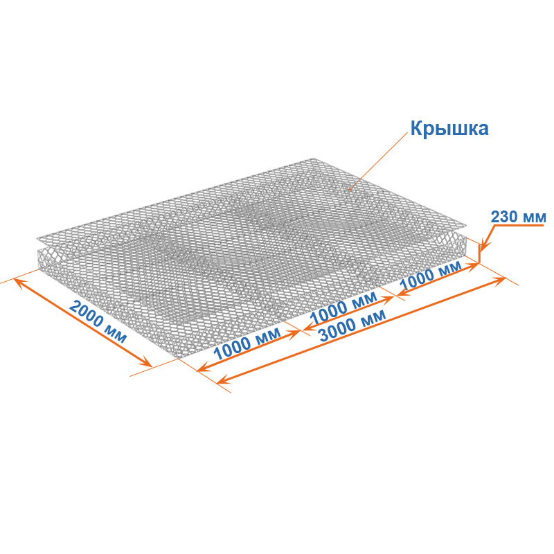 Матрасы Рено 3x2x0,23 — плоские габионные секции из сетки двойного кручения с ячейкой 60х80, проволокой 2,2 мм и покрытием Цинк.