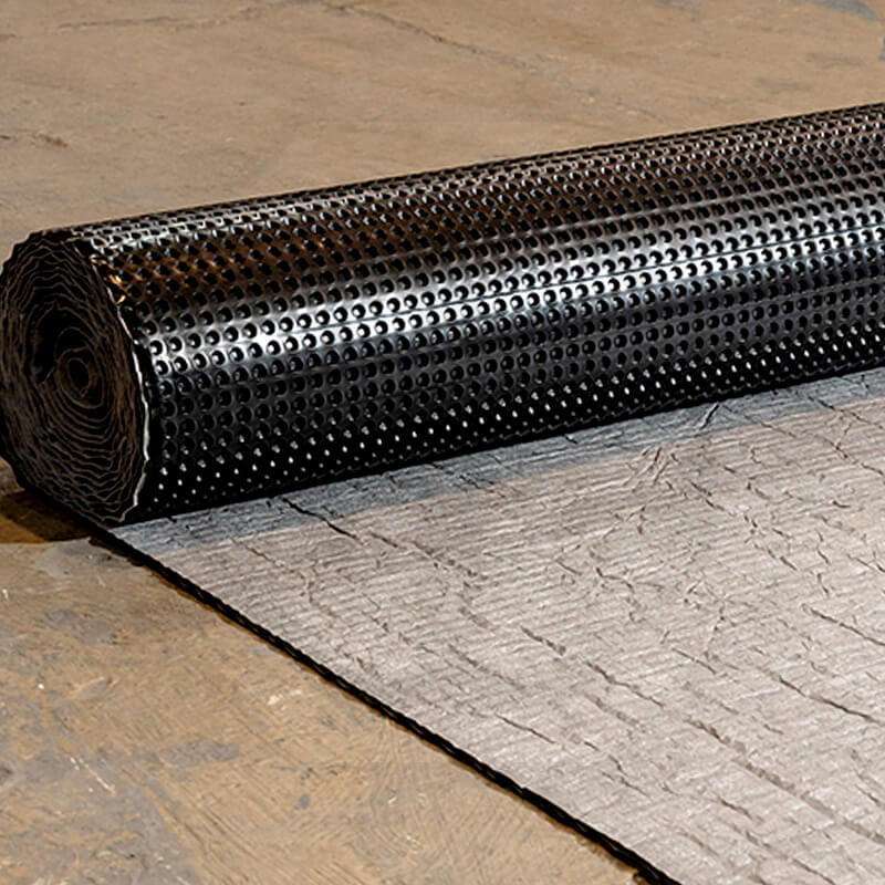 К поверхности геомембраны прикреплен слой геотекстиля, он служит для первичного сбора и отвода влаги. Геотекстиль собирает влагу и отводит ее по дренажным каналам профилированной геомембраны Geo.